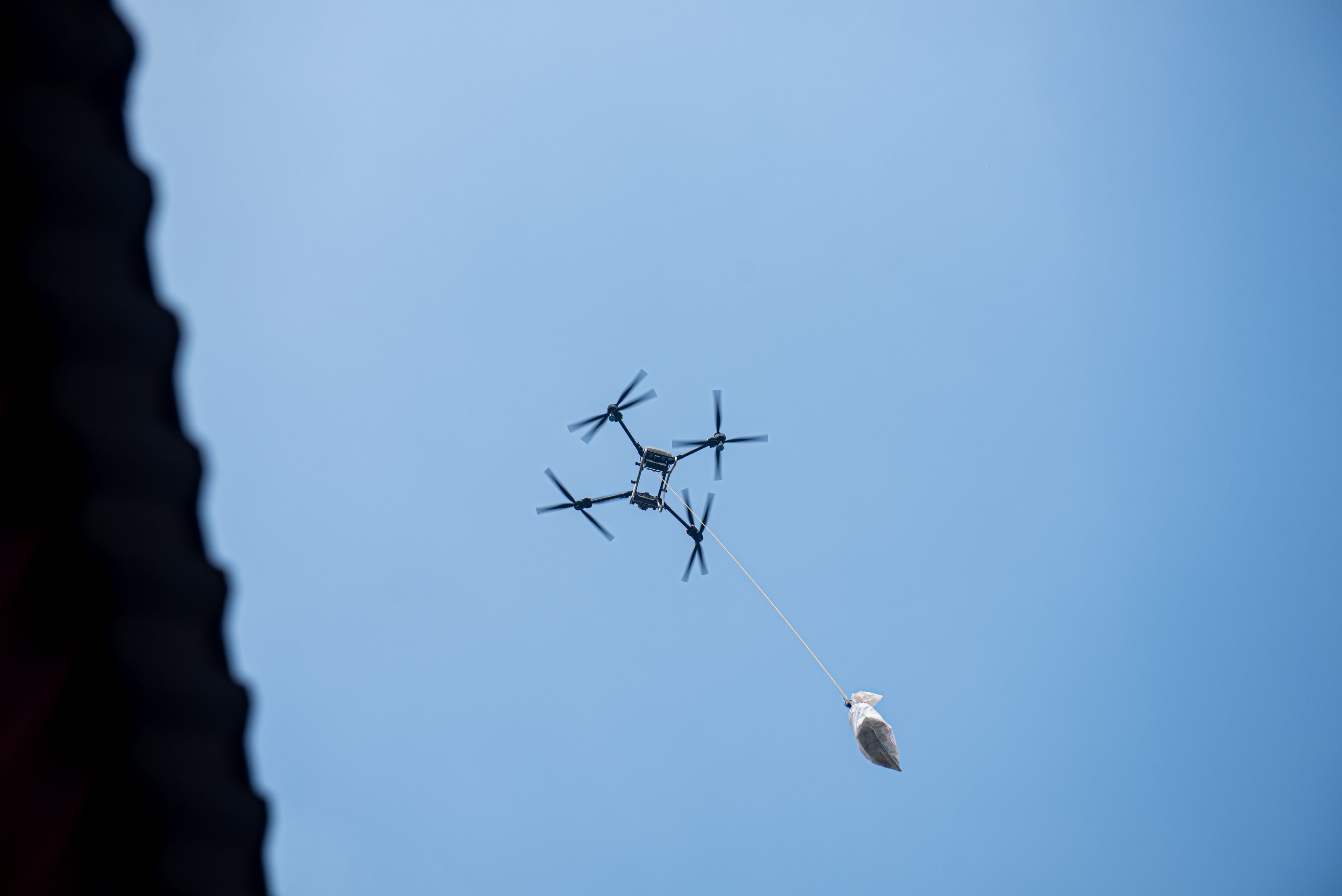 “The rope attaching the package to the drone is over 30 metres long, enough to ensure that the recipient can safely approach the package. Each drop point is mapped with precise coordinates, so accuracy is absolute.”