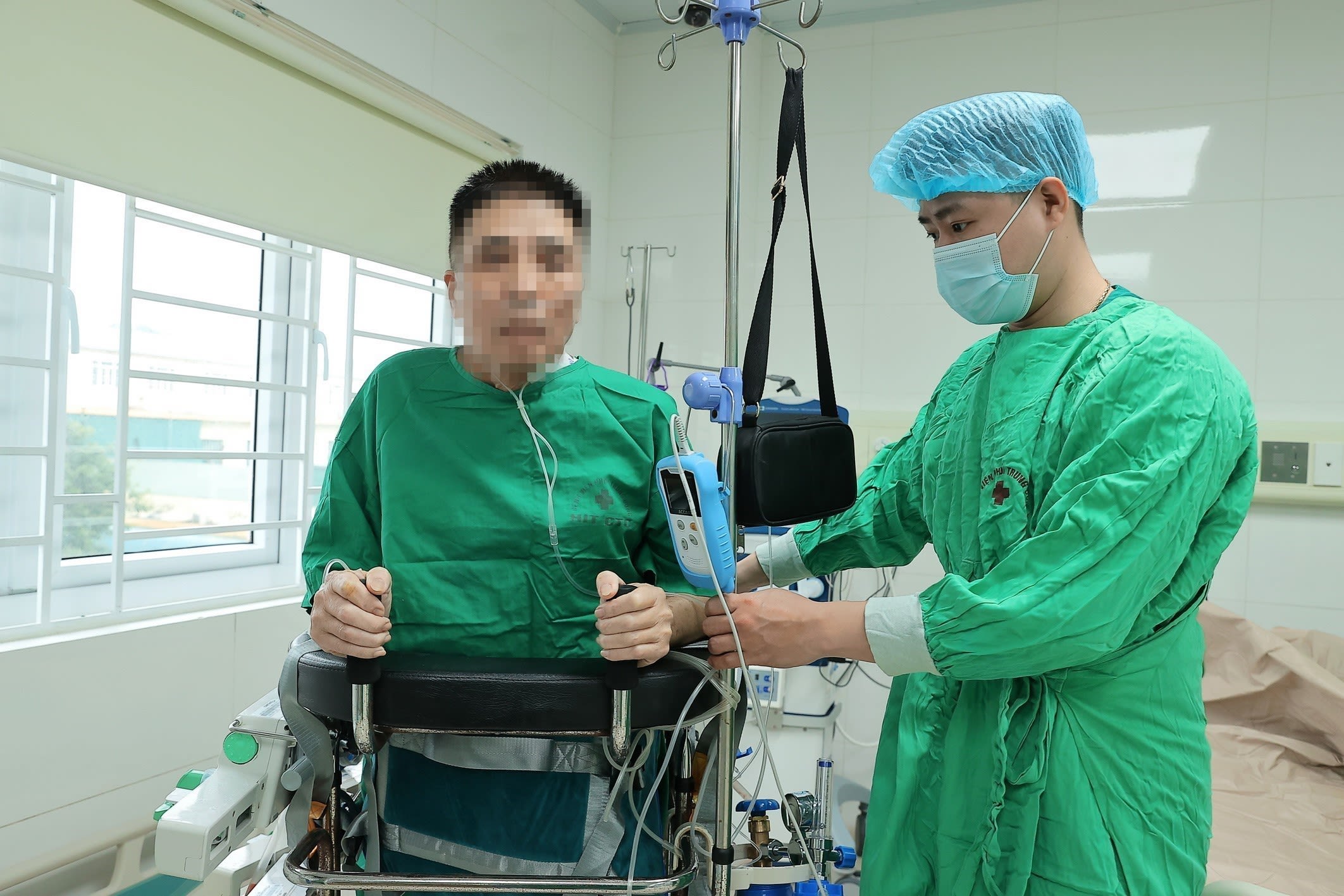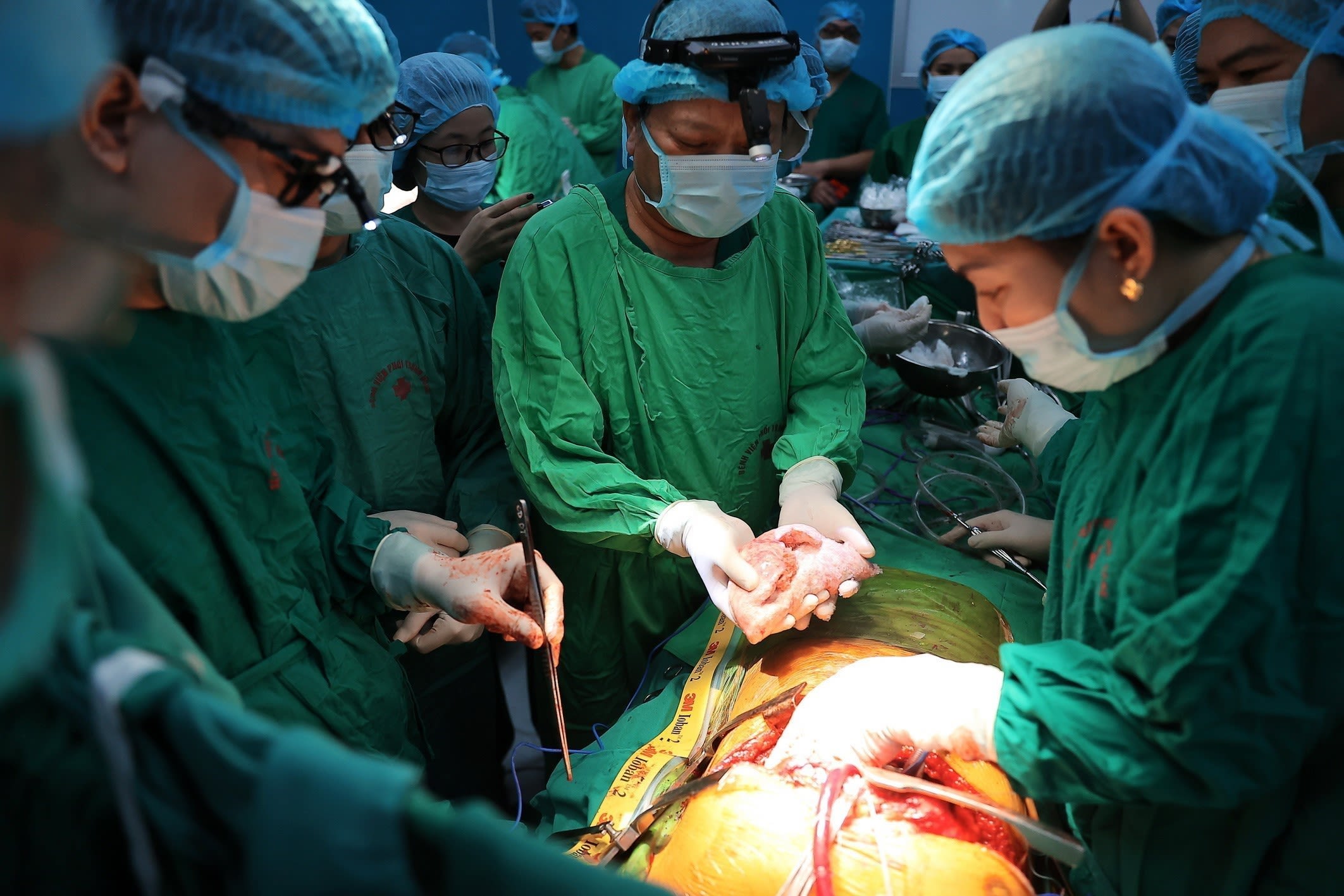 Meritorious Doctor Dr Đinh Văn Lượng, Party Secretary and Director of the National Lung Hospital, directly participates in the lung transplant procedure.