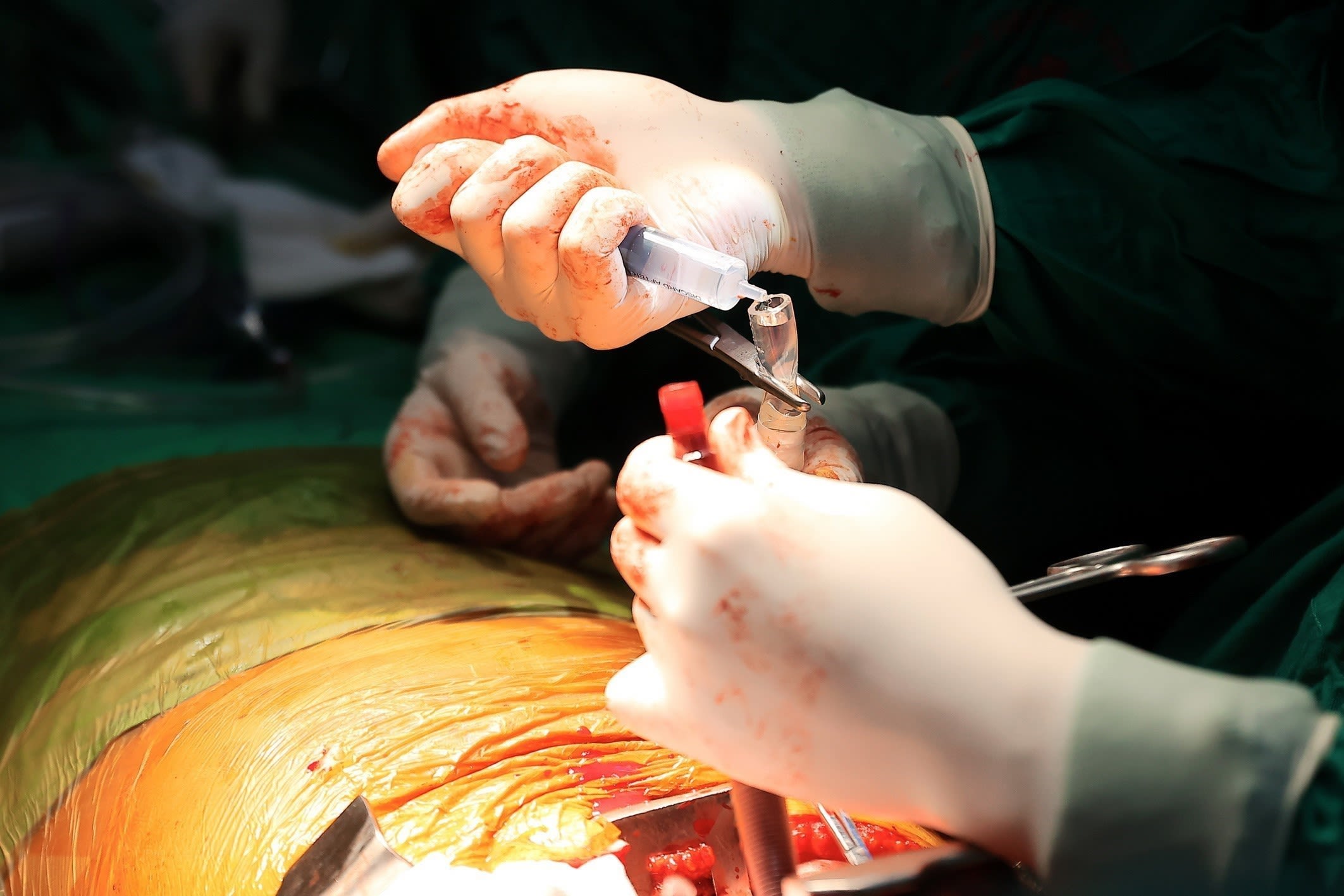 The medical team examines, flushes and transplants the donor lungs for the patient.