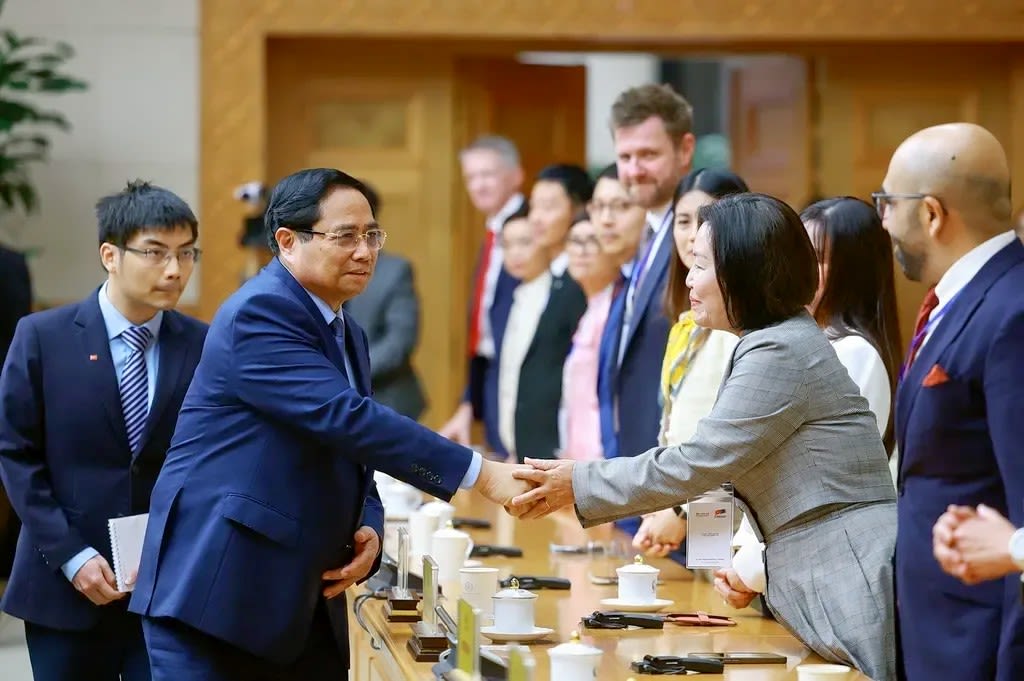 Prime Minister Phạm Minh Chính greets members of the EU-ASEAN Business Council and the European Chamber of Commerce in Việt Nam in November, 2025.