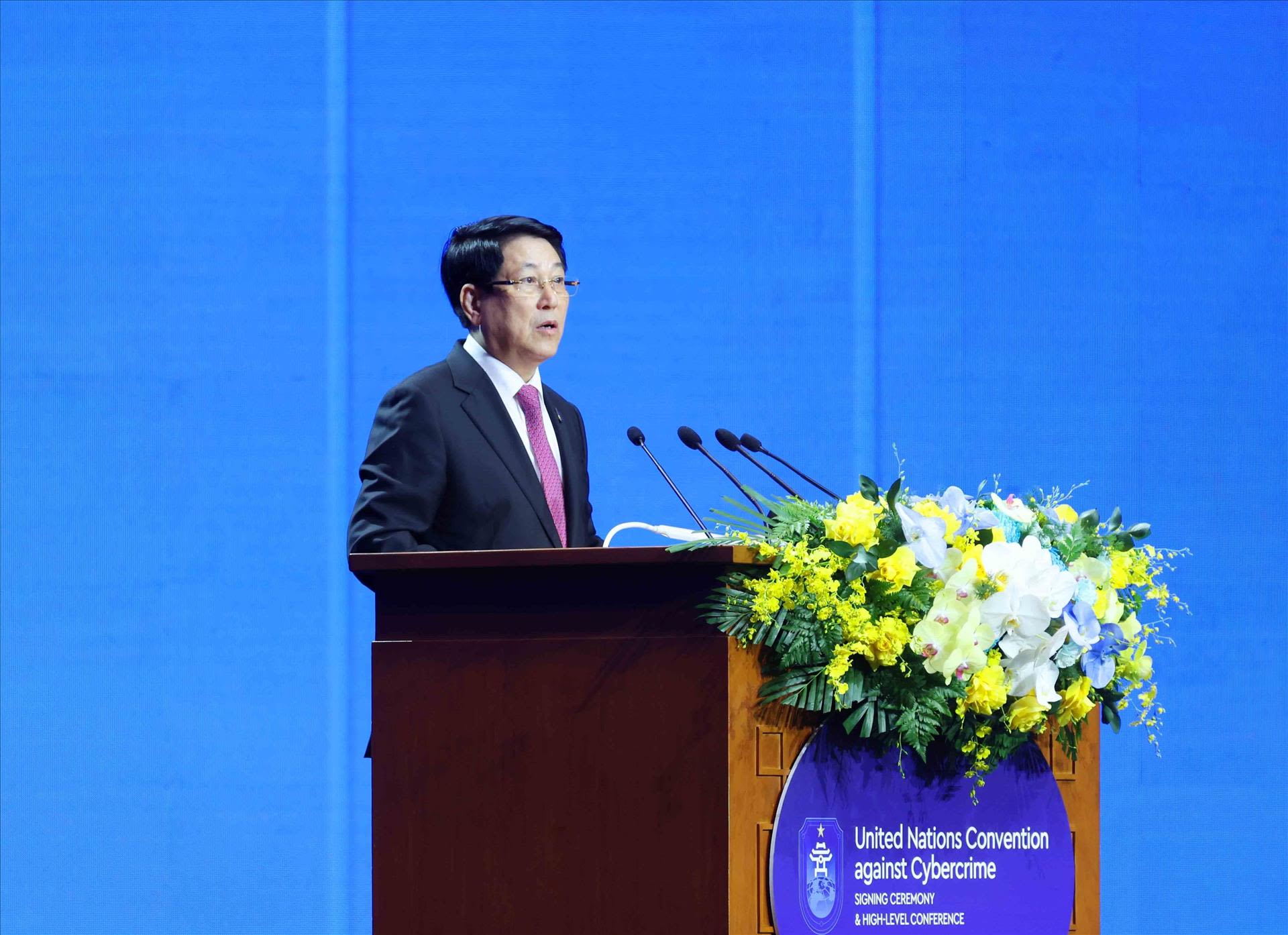 President Lương Cường delivered the opening address at the opening ceremony for signature and the high-level conference of the United Nations Convention against Cybercrime. VNA/VNS Photo Phương Hoa