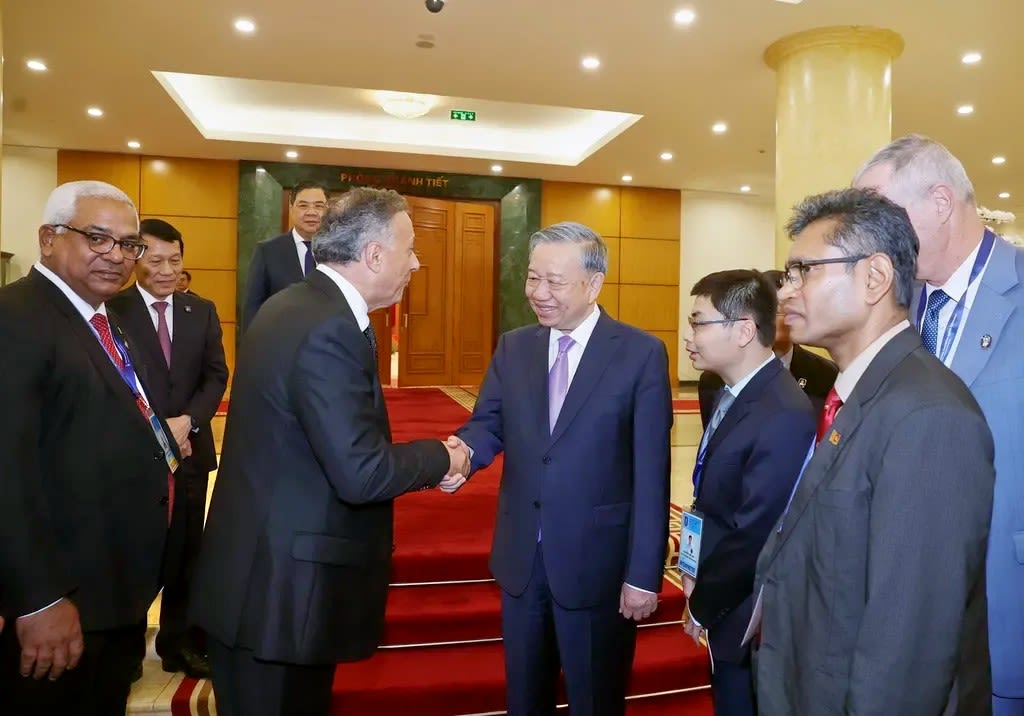 Party General Secretary Tô Lâm welcomes heads of delegations to the Signing Ceremony of the UN Convention against Cybercrime in Hà Nội in October, 2025.