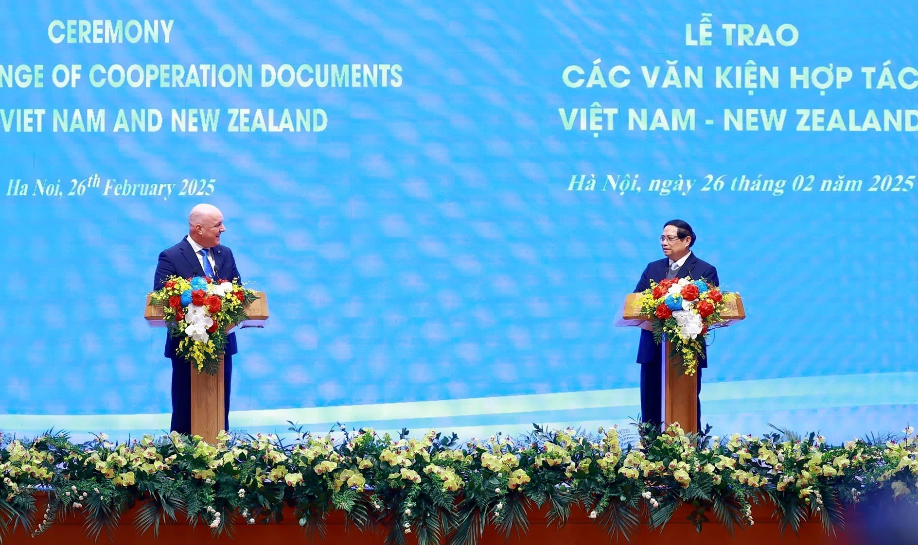 Prime Minister Phạm Minh Chính and New Zealand Prime Minister Christopher Luxon announced the upgrade of Việt Nam–New Zealand relations to a Comprehensive Strategic Partnership. VNA/VNS Photo Dương Giang