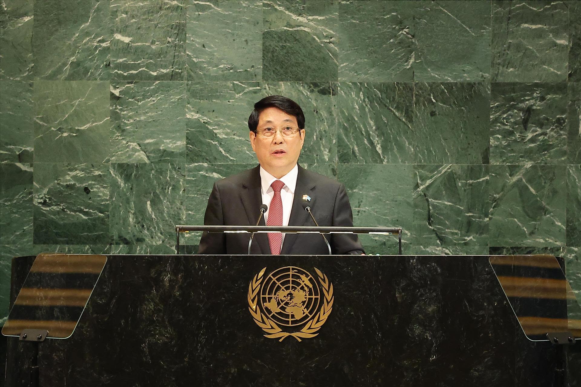 State President Lương Cường speaking at the 80th Session of the United Nations General Assembly. VNA/VNS Photo Lâm Khánh