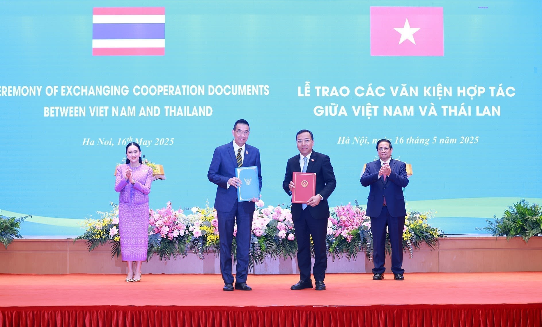 Prime Minister Phạm Minh Chính and Former Thai Prime Minister Paetongtarn Shinawatra witnessed the exchange of a Memorandum of Understanding between Việt Nam’s Ministry of Industry and Trade and the Ministry of Commerce of the Kingdom of Thailand on cooperation in the economic and trade sectors. VNA/VNS Photo Dương Giang