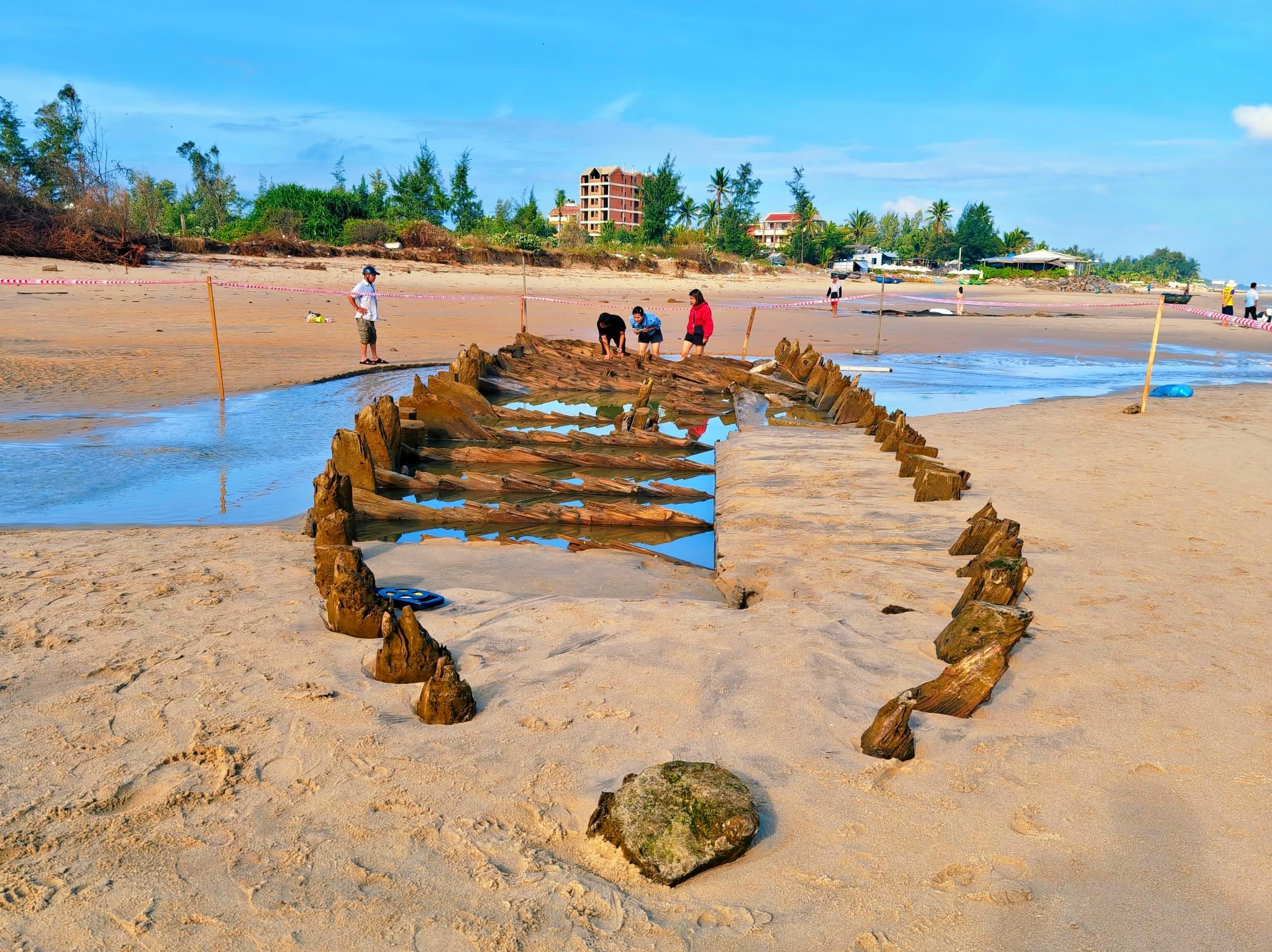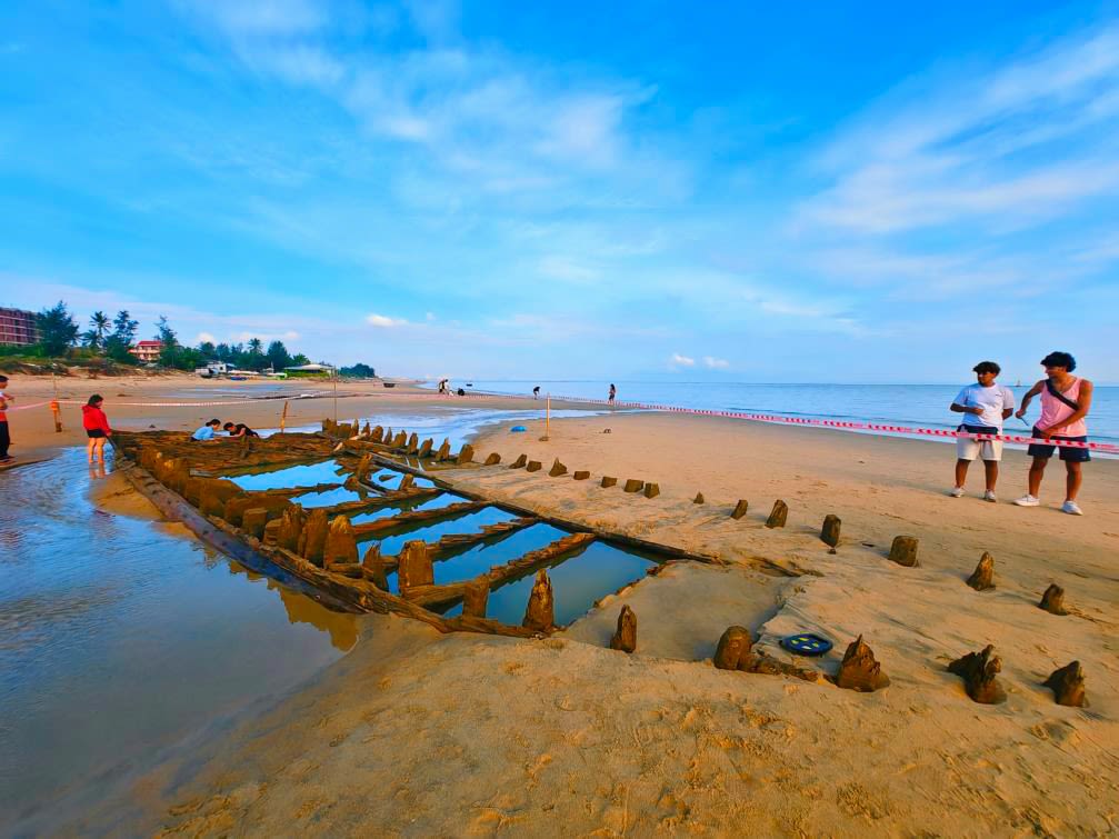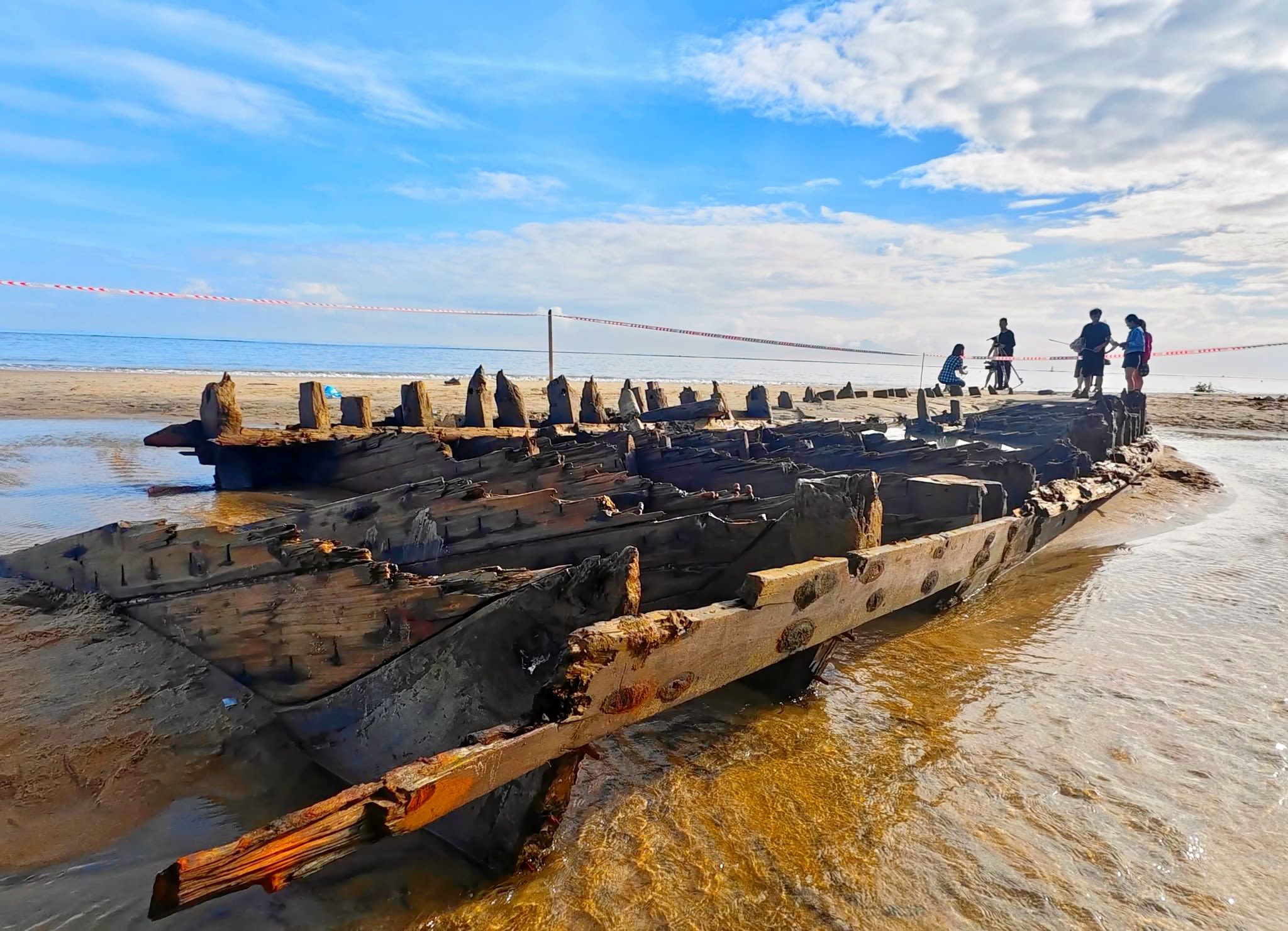 The hull first began surfacing in late December 2023 along the Cẩm An Ward coast (former Hội An City, Quảng Nam), about 400 metres from the ward People’s Committee office, when experts suggested the find could be an “ancient ship treasure” due to its then near-intact condition.